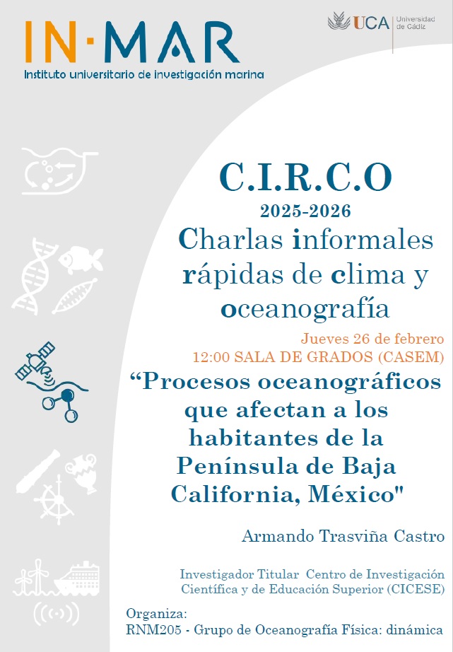 Organizadores: RNM-205 Oceanografía Física: dinámica, Facultad de Ciencias del Mar y Ambientales de la Universidad de Cádiz e Instituto Universitario de Investigación Marina de la UCA.