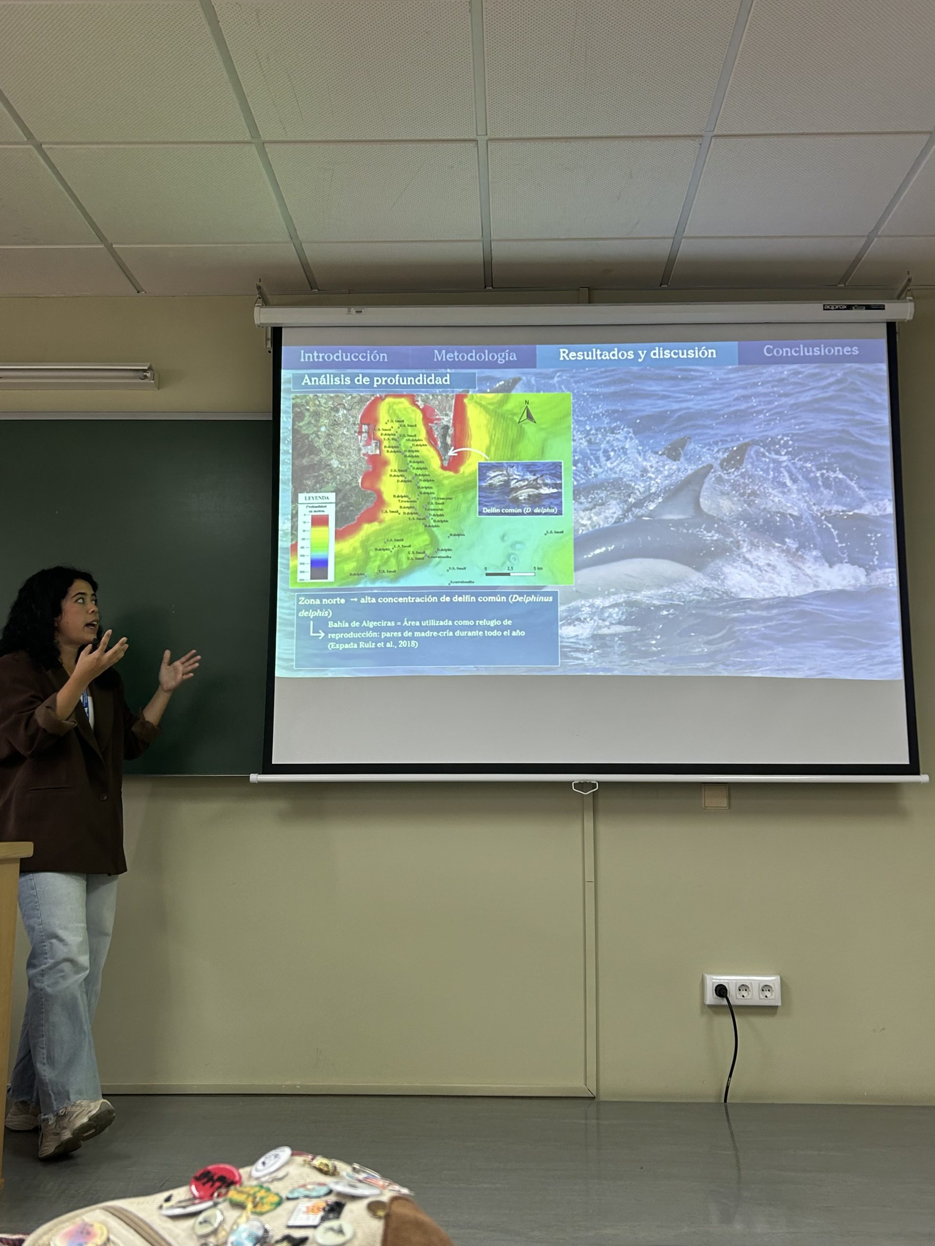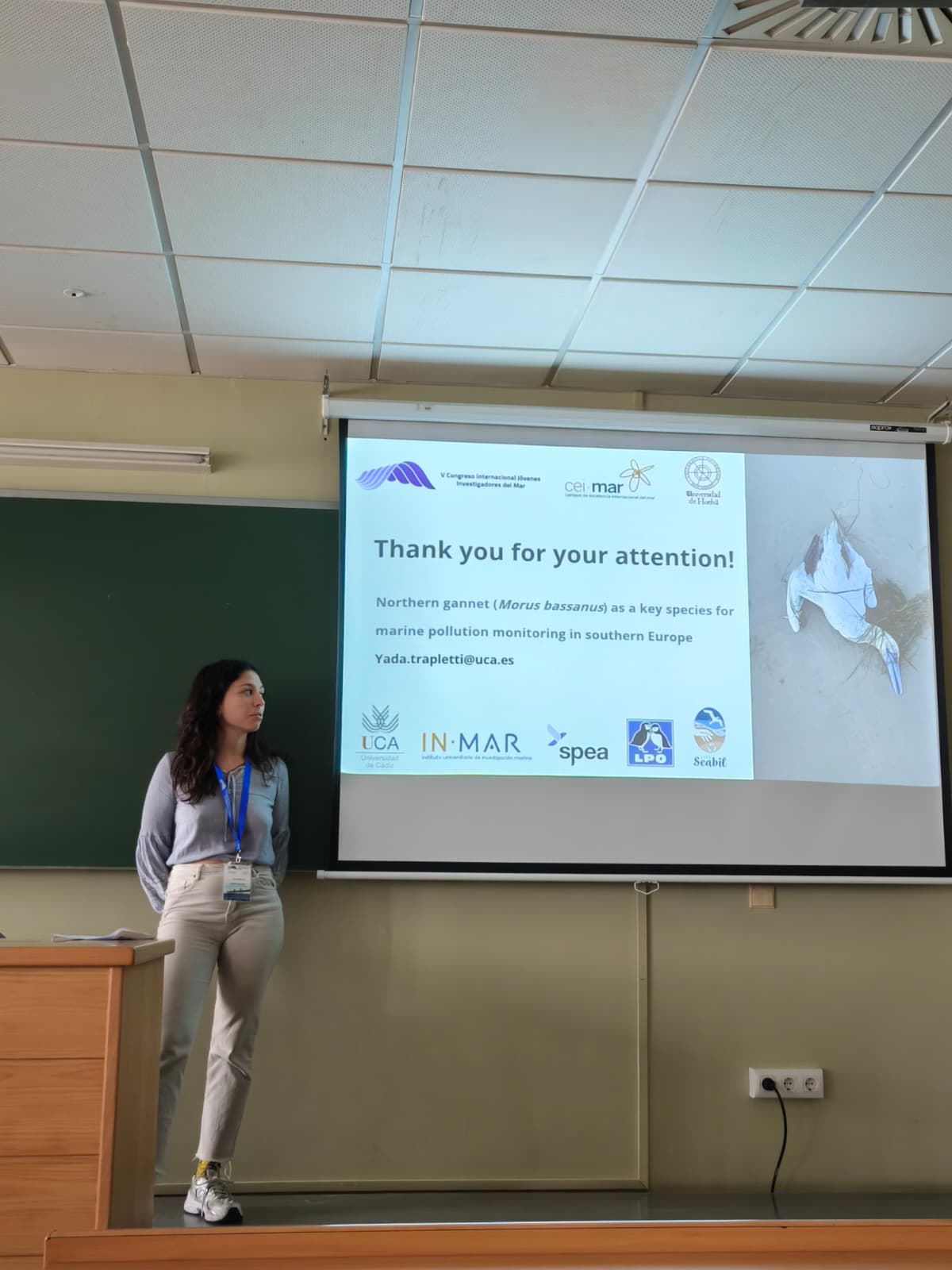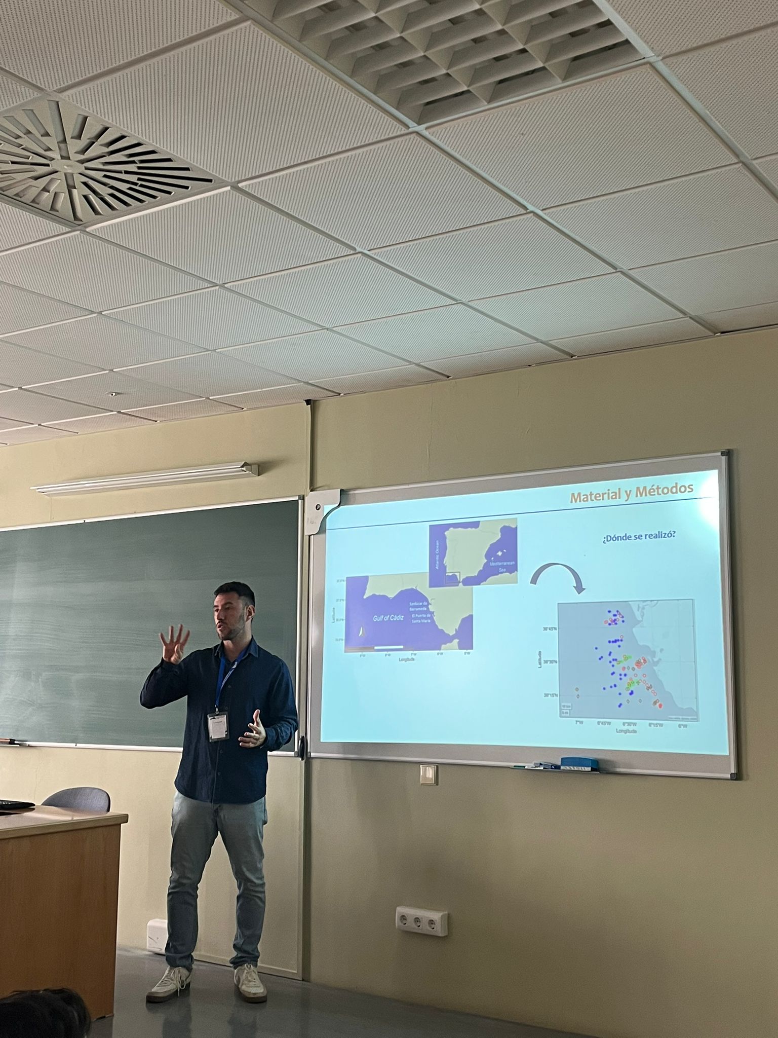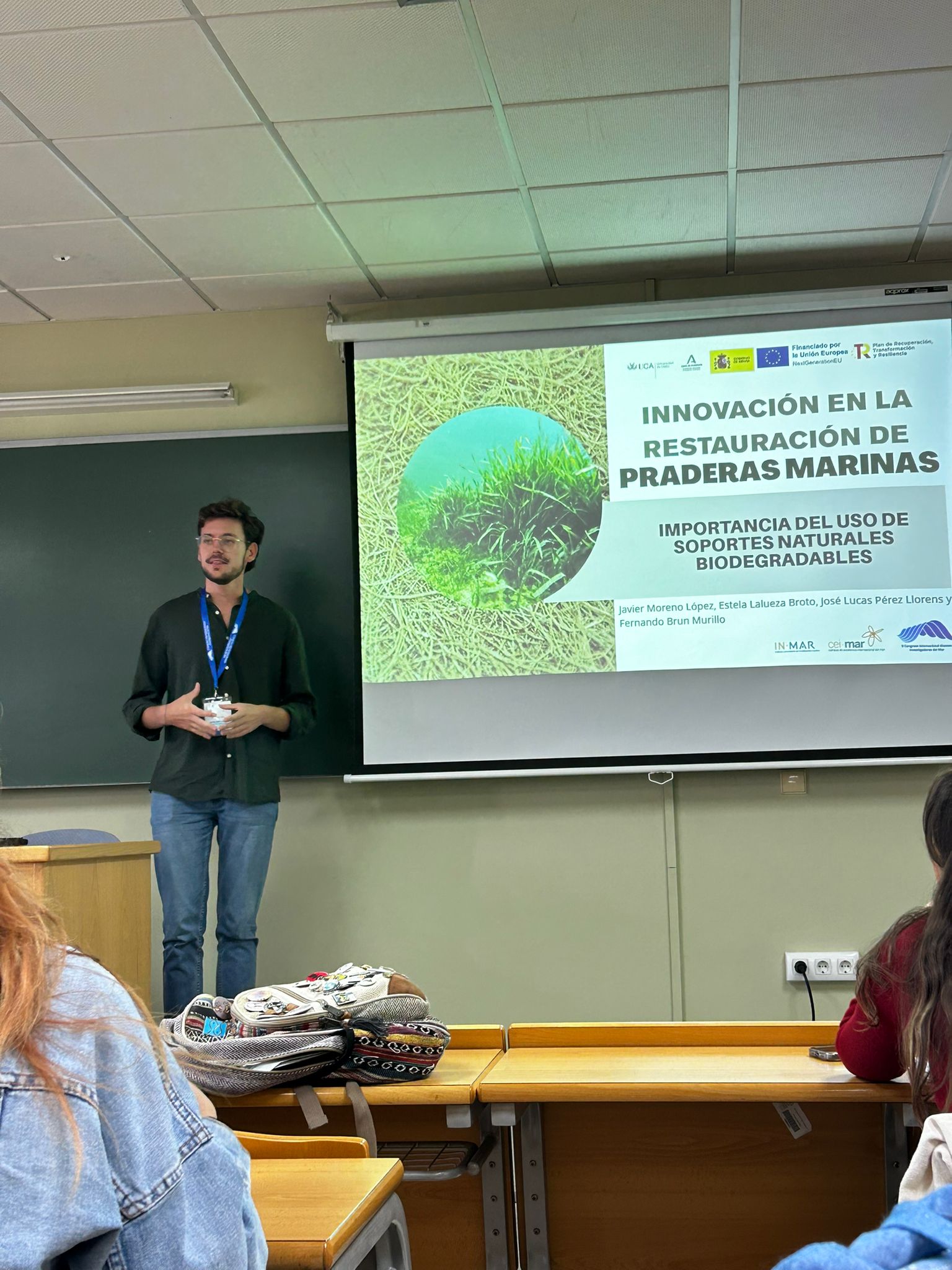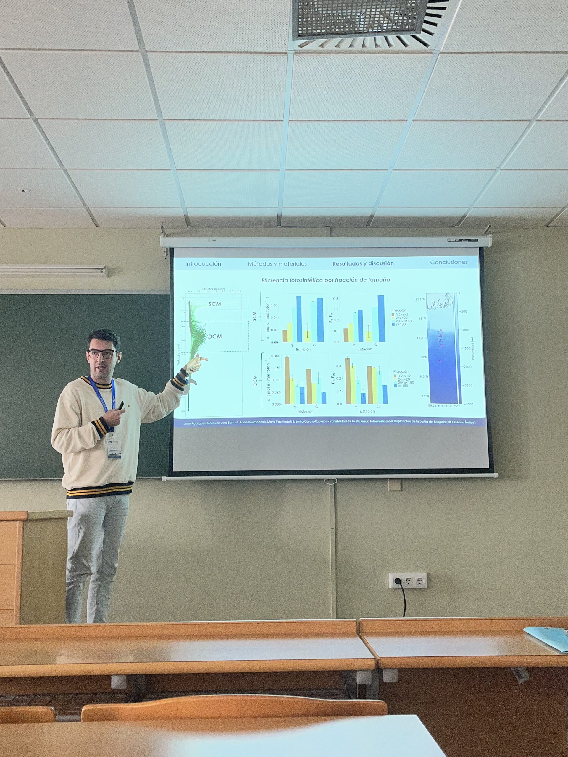 Entre las comunicaciones orales, el personal del INMAR ha contribuido con trabajos sobre producción vegetal en marismas del Parque Natural Bahía de Cádiz (10) , dinámica del material particulado en marismas (15) , monitorización de la circulación de vuelco meridional del Atlántico (AMOC) (21) , efectos de la contaminación por cremas solares en Cymodocea nodosa (22) , y el uso del Northern Gannet como especie centinela en estudios de contaminación marina (23) . También se han expuesto trabajos centrados en variabilidad fotosintética del fitoplancton en la Bahía de Bengala (25) , presencia de cetáceos en el Estrecho de Gibraltar mediante ferris como plataformas de observación (28) , e innovación en restauración de praderas marinas mediante soportes biodegradables (29) .