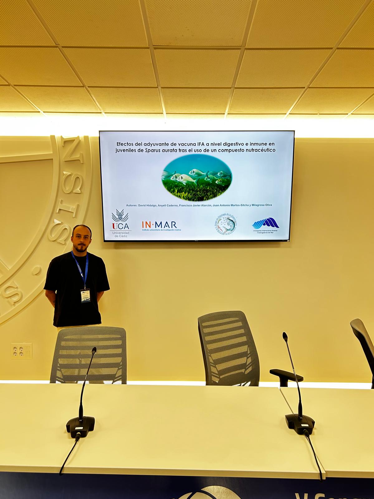 En áreas de biotecnología y fisiología, jóvenes investigadores del INMAR presentaron trabajos sobre efectos del adyuvante IFA en juveniles de Sparus aurata (57) , estudios de otolitos en peces del género Arnoglossus (60) , análisis tróficos en tiburones demersales del mar de Alborán (61, 64) y metodologías de prospección geofísica aplicadas al patrimonio subacuático (68) . También se presentaron trabajos sobre materiales aislantes utilizados en embarcaciones históricas (77) , el uso de tecnología UV-LED en aguas de lastre (79) e innovaciones para la optimización de sistemas de limpieza de gases (scrubbers) en el sector marítimo (83) .