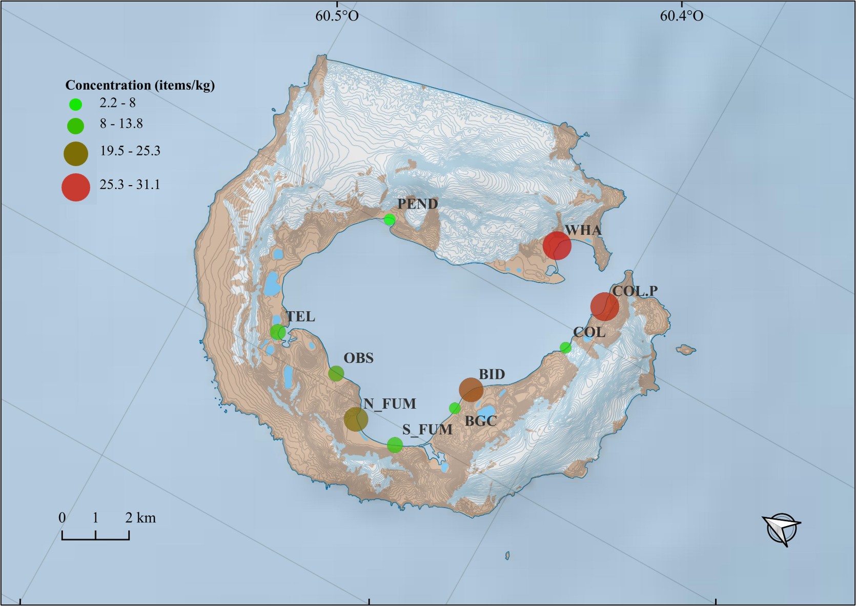 Nuestros resultados proporcionan la primera evidencia de microplásticos en la zona intermareal de Isla Decepción, estableciendo una línea base para futuros estudios de monitoreo y contribuyendo a una comprensión más amplia de la contaminación plástica en los ambientes costeros antárticos.