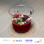 Salmorejo de remolacha con manzana verde, queso de cabra y furikake